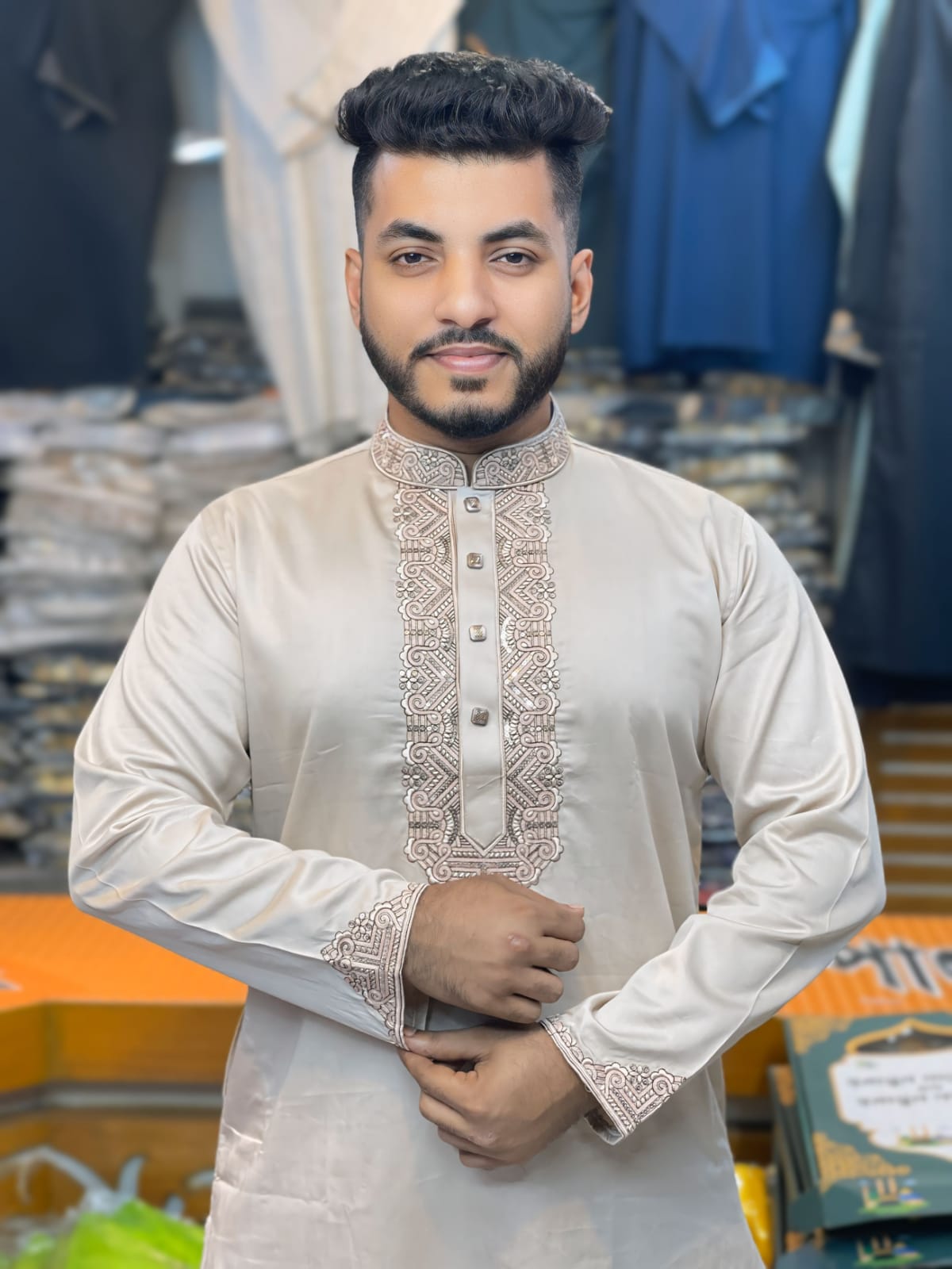 এই পাঞ্জাবিটি তৈরি করা হয়েছে আধুনিক ডিজাইন আর বাঙালির ঐতিহ্যবাহী স্টাইল একসাথে রেখে। উন্নত মানের কাপড়ের উপর নিখুঁত সূচিকর্ম (embroidery) এই পাঞ্জাবিটিকে করেছে আরও আকর্ষণীয় ও রুচিশীল।