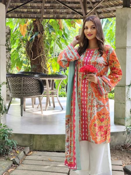 ডিজাইনটি একদম ট্রেন্ডি – সাথে রয়েছে সুন্দর প্রিন্ট ও ফ্যাশনেবল কাটিং যা তোমার স্টাইলকে করে তুলবে আরও আকর্ষণীয়। ব্যস্ত জীবনে আলাদা করে দর্জির ঝামেলা ছাড়াই সরাসরি পরার মতো এই থ্রি পিসটি তোমার পোশাক কালেকশনে থাকা একদমই দরকার!